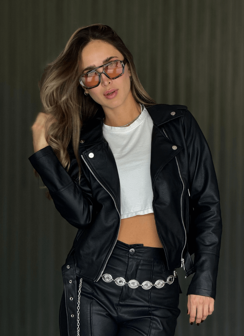 Disponible en varios colores, siendo la chaqueta negra tipo cuero la favorita, ese básico infaltable que toda mujer necesita en su clóset.