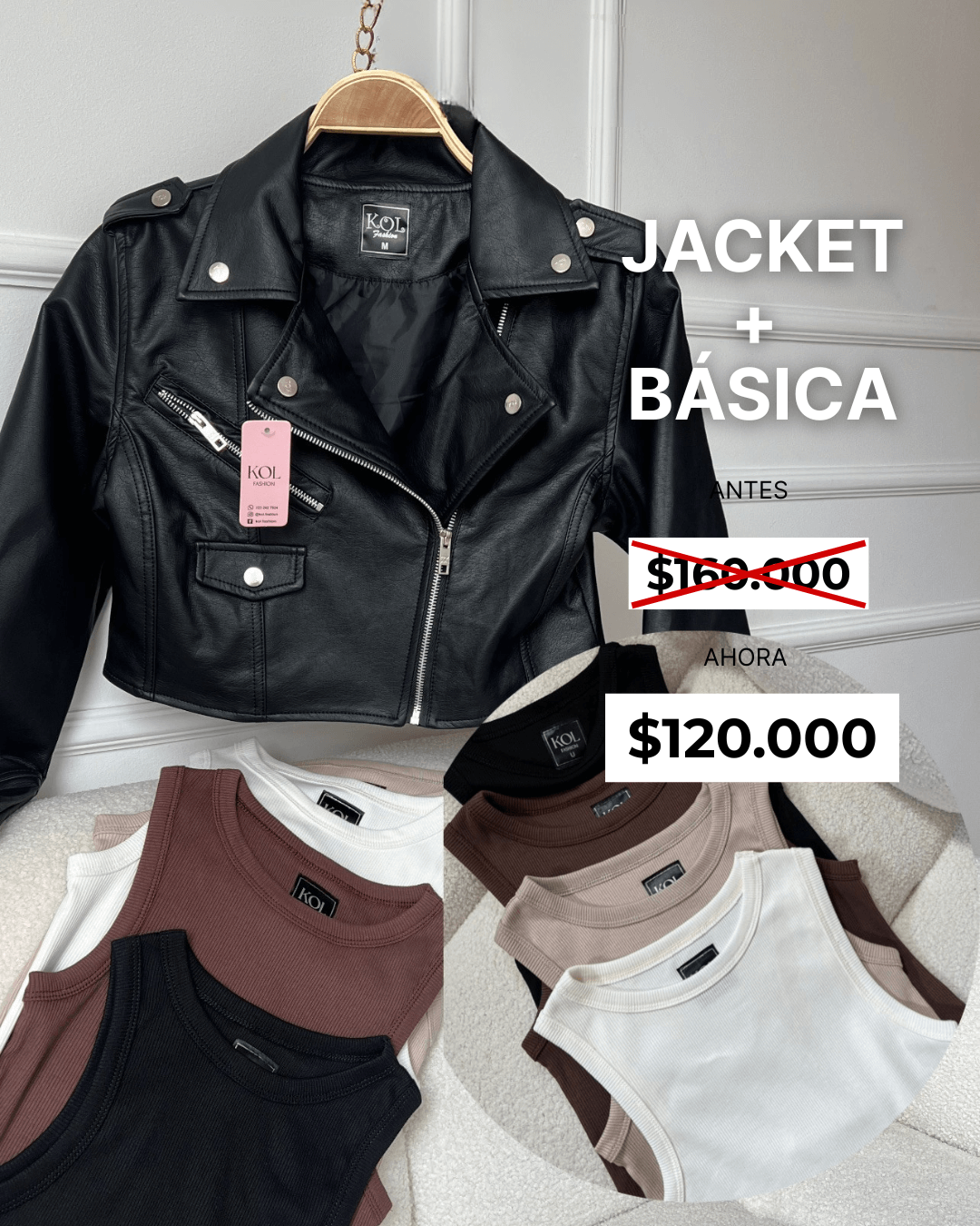 • Super Combo. Elige una chaqueta de nuestra colección y combínala con una blusa básica en el color que más te guste. Dos prendas esenciales, versátiles y con el sello de calidad Kol. Su precio regular es de $160,000, pero en esta promoción especial te lo llevas todo por solo $120,000. Una oferta exclusiva que no se repite, pensada para darte estilo completo con ahorro real.